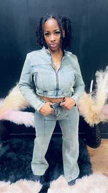 FLEECE HALF ZIP PULLOVER TOP & STACKED PANTS SET