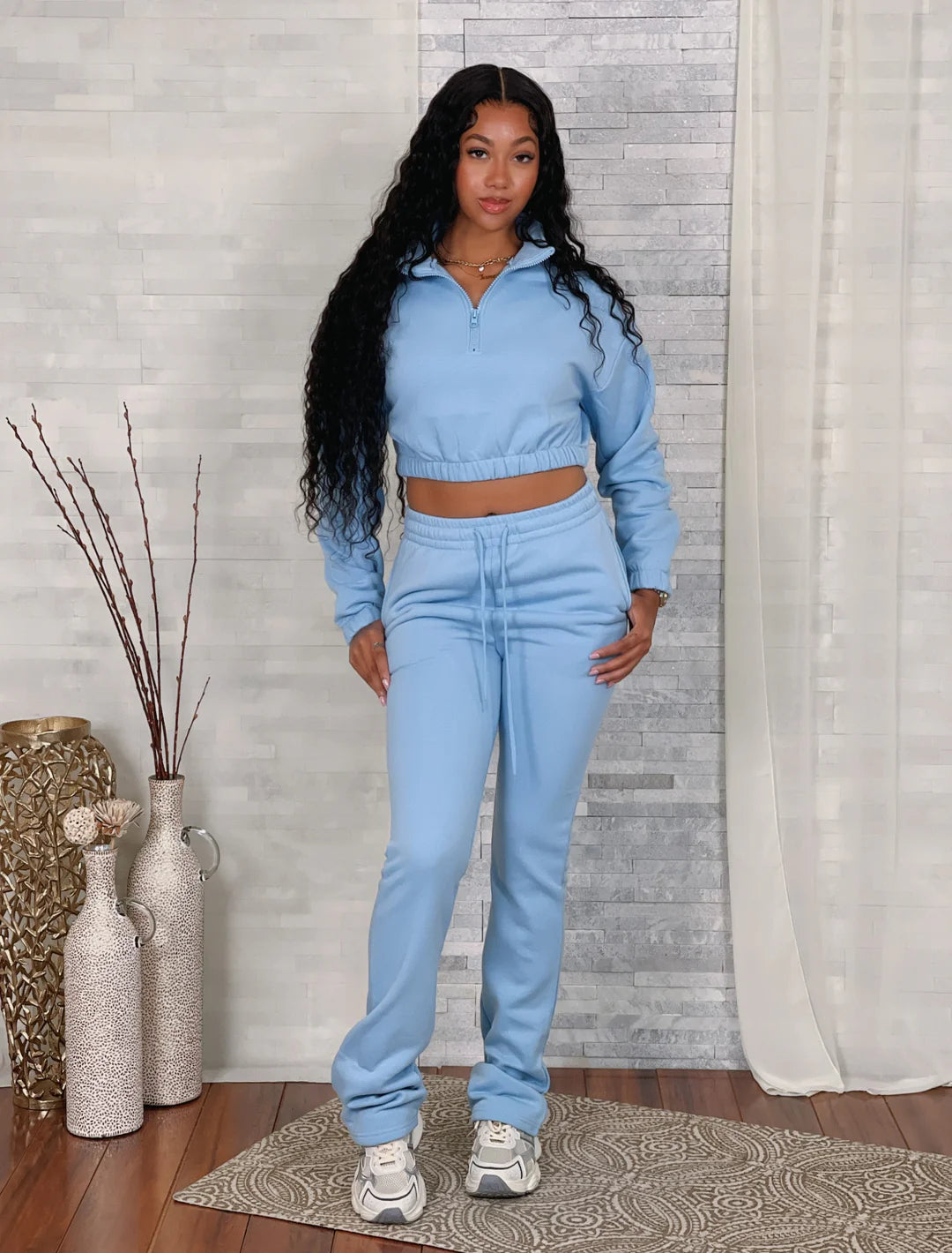 FLEECE HALF ZIP PULLOVER TOP & STACKED PANTS SET