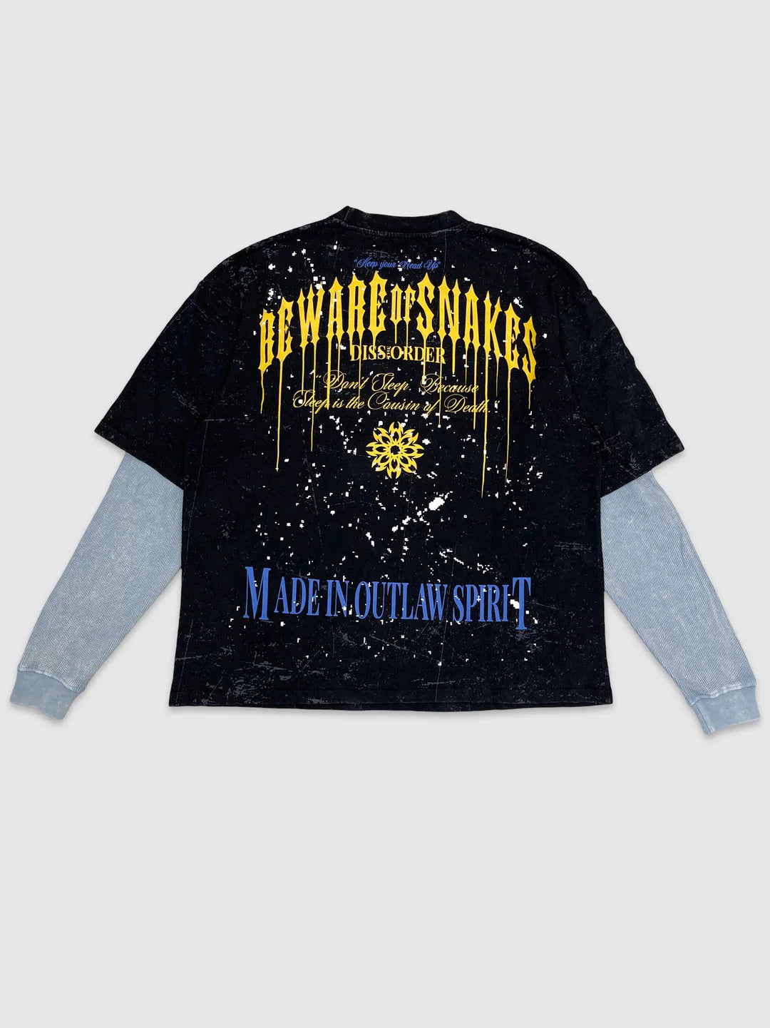 Vintage washed black base with contrast light-blue sleeves