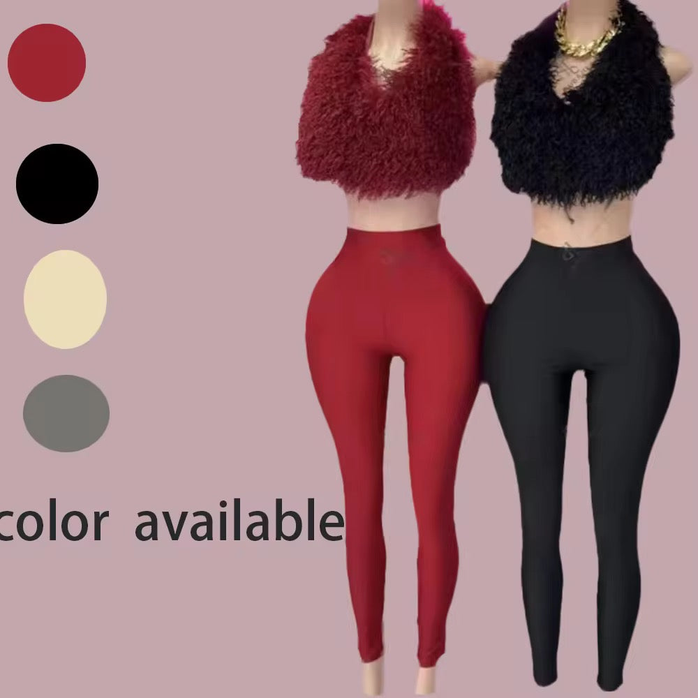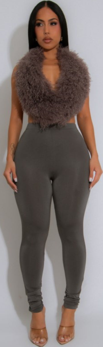 Open back faux fur top and legging set.